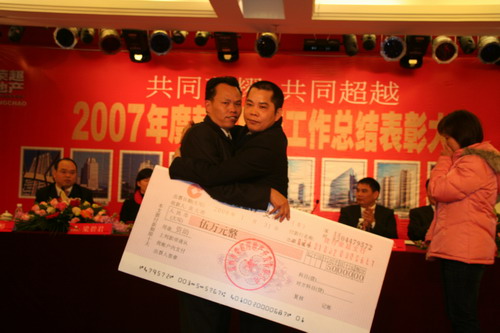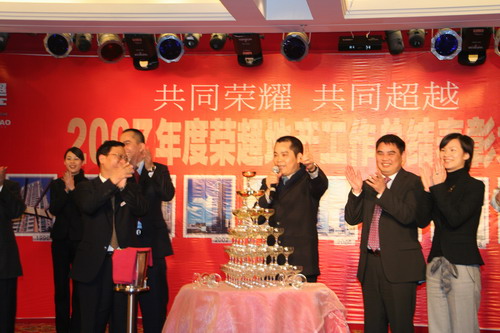 晚會上,榮超地產(chǎn)公司吳偉廬副總經(jīng)理就2007年度的工作做了充分總結(jié)。2008年,榮超地產(chǎn)一路走來,歷經(jīng)15載,成為深圳房地產(chǎn)行業(yè)的知名品牌發(fā)展商。1998年,榮超公司開始進(jìn)軍深圳CBD,成功開發(fā)了國際商會大廈A、B座、國際商會中心、經(jīng)貿(mào)中心四座超甲級寫字樓,將榮超地產(chǎn)打造成為“專業(yè)制造商務(wù)空間”的超甲級寫字樓專家。2007年中,圓滿完成經(jīng)貿(mào)中心的尾盤銷售,并順利入伙。同年,公司同時(shí)開發(fā)了榮超僑香諾園、榮超中心、濱海大廈三個(gè)項(xiàng)目,總計(jì)建筑面積超過25萬平方米。2008年,榮超地產(chǎn)的中心區(qū)超甲級寫字樓——榮超中心和寶安中心區(qū)首座甲級寫字樓——濱海大廈兩個(gè)項(xiàng)目將隆重入市,榮超地產(chǎn)步入專業(yè)打造商務(wù)空間的輝煌。