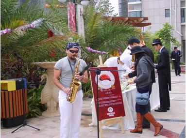 與此同時,來自哥倫比亞樂隊的兩位歌手給大家?guī)砹藙尤说乃_克斯風(fēng)歌曲和激情的南美舞蹈,場面氣氛逐漸進(jìn)入高潮。