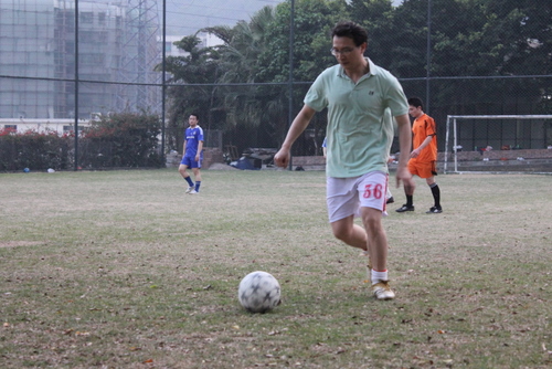 在比賽前的最后休整后,隊(duì)員分二組進(jìn)行8人友誼賽,每個(gè)人都興奮異常,雙方你來(lái)我往,在綠茵場(chǎng)上展開(kāi)了“頭腦和身體”的博弈。我們足球隊(duì)隊(duì)員平均年齡在30歲左右,因入隊(duì)時(shí)間不一樣,有部分隊(duì)員身體素質(zhì)和整體配合還正處于調(diào)整和磨合期,其他大部分隊(duì)員體力充沛,整體配合已相當(dāng)成熟老道,葉炬標(biāo)等人技術(shù)嫻熟,擅長(zhǎng)盤帶,射門力量大,沖擊力極強(qiáng)。
