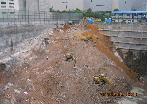 榮超大廈項(xiàng)目自2010年7月正式開(kāi)工以來(lái),經(jīng)過(guò)歷時(shí)十一個(gè)月的努力,截止2011年5月16日已完成石方爆破53960立方米、土石方外運(yùn)63000立方米,完成土石方總工程量90%的佳績(jī),這離不開(kāi)我司所有人員的努力。