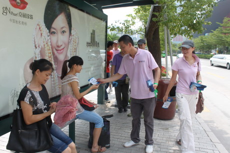 活動現場處處洋溢著熱情的綠色氣息,活動期間,我司行政人事部經理王偉敬代表公司領取了綠色出行車貼和深圳大運期間車主參與行動的宣傳單,帶領大家在鵬城四路至市民中心一帶沿途為過路市民派發(fā)行動宣傳單,雖然是炎炎夏日,但大家的熱情依然高漲,并倡議廣大車主積極參與到行動中來,主動停用、少用機動車,盡量選擇公交車、地鐵、自行車、步行、合乘等綠公出行方式。讓我們的行動為大運增添多一絲綠色,多一路暢通。
