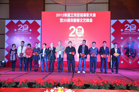 在首先進(jìn)行的2012年總結(jié)表彰大會(huì)上,總經(jīng)理代表董事長(zhǎng)總結(jié)了公司2012年取得的工作成績(jī),這年榮超人開(kāi)拓進(jìn)取,扎實(shí)工作,先后取得了“榮超中心B座”100%租賃、“榮超大廈”全面完工、“榮超英隆大廈”基本完工、 “福華小區(qū)”100%和諧拆遷、“榮超城市春天花園”全面開(kāi)工等出色成績(jī),為2012年畫(huà)下了最精美的句號(hào)。同時(shí)布局了2013年重點(diǎn)工作,這年榮超開(kāi)門(mén)迎喜,成功拿下南山高新科技園一宗地塊,暫定名“榮超聯(lián)合總部大廈”,這個(gè)好開(kāi)端是榮超20周年最好的生日禮物。會(huì)上還對(duì)“2012年度優(yōu)秀員工”、“五年、十年長(zhǎng)期服務(wù)員工”進(jìn)行了表彰。特別是在頒發(fā)十年長(zhǎng)期服務(wù)獎(jiǎng)時(shí),董事長(zhǎng)用他獨(dú)特的Style來(lái)進(jìn)行頒獎(jiǎng),將全場(chǎng)氣氛推向了高潮。