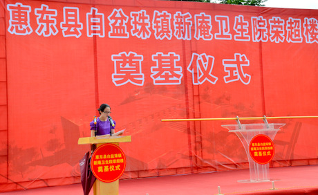 奠基儀式開始由惠東縣衛(wèi)生局局長(zhǎng)莊紹君致辭,他百感交集地表示 “十年前,作為惠東縣人民醫(yī)院院長(zhǎng),親歷了楊榮義先生無償捐資捐建的惠東縣人民醫(yī)院榮超樓的奠基儀式,十年后的今天,又作為縣衛(wèi)生局局長(zhǎng)再次見證了楊榮義先生捐資的新庵衛(wèi)生院榮超樓奠基,這既是歷史的機(jī)緣巧合也是楊榮義先生多年來一直熱心公益,為惠東醫(yī)療衛(wèi)生事業(yè)發(fā)展的無私奉獻(xiàn)。回頭細(xì)數(shù),新庵衛(wèi)生院榮超樓已是楊榮義先生在我縣醫(yī)療衛(wèi)生系統(tǒng)無償捐建的第三座榮超樓。”最后他代表全縣衛(wèi)生系統(tǒng)的干部職工對(duì)楊榮義先生的善舉表示衷心的感謝。