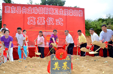 8月14日上午,陽(yáng)光沖破雨水,展露晴朗。由我司董事長(zhǎng)楊榮義捐資1000萬元的惠東縣白盆珠鎮(zhèn)新庵衛(wèi)生院榮超樓正式奠基。董事長(zhǎng)楊榮義及夫人梁碧玉、總經(jīng)理?xiàng)顦s光、榮超慈善基金會(huì)副會(huì)長(zhǎng)楊穎婷、楊超等參加了奠基儀式,并與惠東縣關(guān)聯(lián)的領(lǐng)導(dǎo)班子及參與新庵衛(wèi)生院榮超樓建設(shè)的相關(guān)人員共同見證了這一造福民眾的喜慶時(shí)刻。