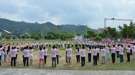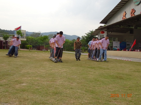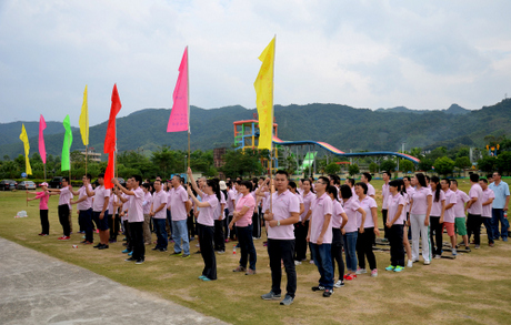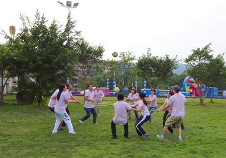 活動(dòng)第二天上午,榮超人集體游覽藍(lán)田瑤族風(fēng)情園,觀看《舞火狗》文藝表演。下午進(jìn)行拓展訓(xùn)練,在拓展活動(dòng)開始前,榮超成員被迅速分成了8個(gè)組,這8個(gè)組的成員來自不同的部門,通過一番頭腦風(fēng)暴,他們共同創(chuàng)建的隊(duì)名、隊(duì)歌、口號(hào)和LOGO等也逐一精彩亮相,8個(gè)團(tuán)隊(duì)朝氣飛揚(yáng),氣勢如虹的拉開了拓展比拼的序幕。他們分別參與到了“鼓動(dòng)人心”、“有軌列車”的項(xiàng)目中,面對(duì)兩項(xiàng)看似容易其實(shí)艱難的項(xiàng)目,他們共同配合,不斷探索總結(jié),齊心協(xié)力攻克項(xiàng)目,圓滿完成了兩項(xiàng)拓展活動(dòng)。