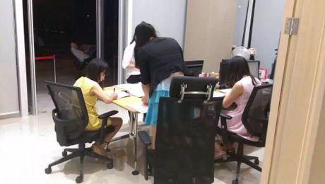 工作人員在加班簽約