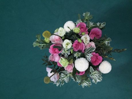 花藝培訓(xùn)課邀請(qǐng)了苗坤源主講,他曾獲得第五界“藝展杯”插花創(chuàng)意PK擂臺(tái)賽金獎(jiǎng),國(guó)際華商聯(lián)尤尼杯花藝設(shè)計(jì)師職業(yè)大賽最佳設(shè)計(jì)獎(jiǎng)。他對(duì)“花材的選購(gòu)”,“花的造型分類”、“花材的剪切基礎(chǔ)方法”、“花藝工具展示”、“鮮花的保養(yǎng)與養(yǎng)護(hù)”等進(jìn)行了系統(tǒng)的講解。現(xiàn)場(chǎng)苗老師還進(jìn)行了插花示范,更手把手指導(dǎo)學(xué)員自行插花?,F(xiàn)場(chǎng)參與插花課的員工們都熱情高漲,在苗老師的指導(dǎo)下學(xué)員們拿著花材與剪子,細(xì)心地打理著每一朵花,認(rèn)真地研究著位置該如何擺放,現(xiàn)場(chǎng)一片歡聲笑語(yǔ), 鮮花經(jīng)學(xué)員們精心設(shè)計(jì)和裝扮后,一件件美麗的作品誕生了,有的簡(jiǎn)約大氣,有的甜美婉約,有的繁花茂盛……各式各樣的作品,讓人大開(kāi)眼界,過(guò)目難忘。