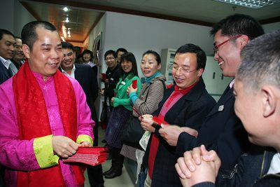 董事長楊榮義一早就來到公司,親自到各個辦公區(qū),逐個向員工們派發(fā)利是,表達出了對員工們的節(jié)日關懷與問候。給新年第一天上班的員工們大派開工利是,這是自榮超成立以來的傳統(tǒng)習俗,而“利是”有大吉大利、好運連連之意。員工們接過楊董事長的開工利是,齊聲感謝,并向楊董事長致以熱烈的掌聲。自去年受金融危機影響,各行各業(yè)業(yè)績不景氣,有些企業(yè)紛紛裁員,甚至無法經(jīng)營,而榮超地產(chǎn)卻在危機中站穩(wěn)了腳跟,楊董事長更是宣布不裁員,不減薪,甚至加大獎金力度。在09年迎新春晚會上還不忘再給榮超員工每人加1千元的新年紅包。楊董事長的關愛之舉,感動著每一位榮超人,所以一聲謝謝、一片掌聲是榮超人發(fā)自內(nèi)心對楊董事長的敬意,這也正是企業(yè)愛員工,員工愛企業(yè)的真實寫照。