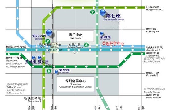 1、周邊干道:深南大道、濱河大道、紅荔路、新洲路、益田路、金田路、彩田路、皇崗路